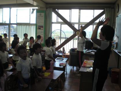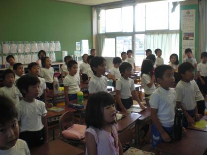 朝の会を利用して応援歌の練習です。勝呂先生・黒田先生もこの元気にびっくり