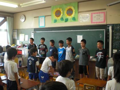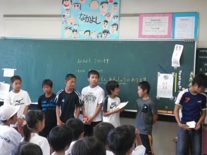 いよいよ今週末11日(土)運動会です。8:00から応援団が教室訪問をして、応援練習をしていました。応援リーダーのみなさん頑張っています。