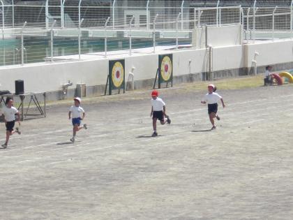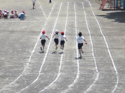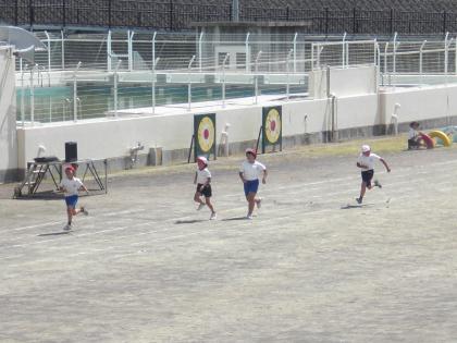 演技の練習の後は、力走です。スタートから自分のレーンを走り続けます。