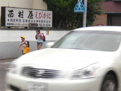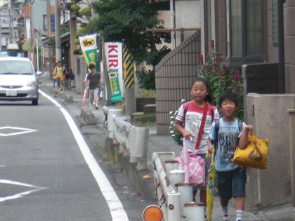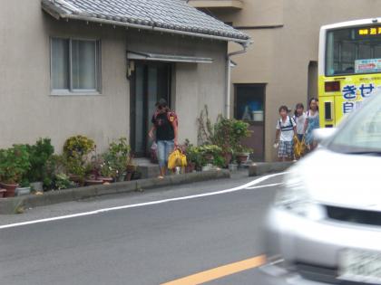 バスを降りて学校へ向かう児童や徒歩通学の児童です。