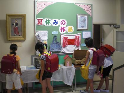 登校して教室へ行く前に、2回職員室横の夏休み研究作品を見ています。
