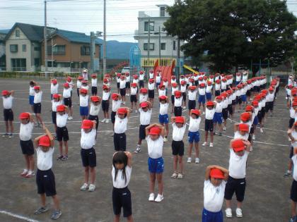 全校によるモーニングストレッチです。