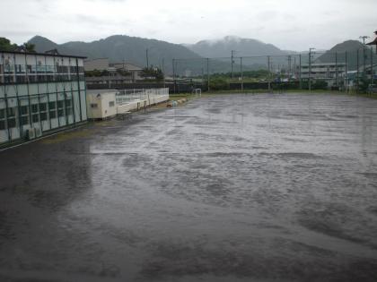 朝から降り続く雨で、本日象山幼稚園が運動会の練習に来る予定でしたが、このような状態で中止になりました。