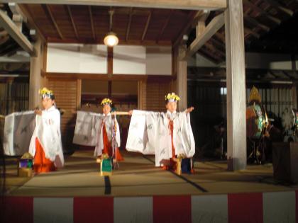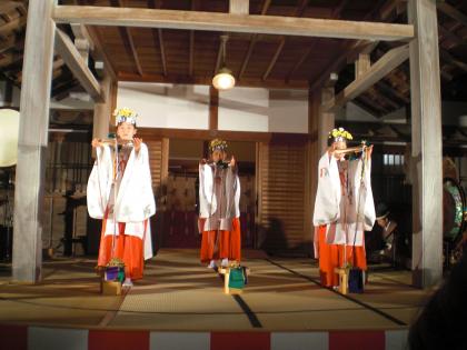 いよいよ浦安の舞です。土佐谷秀子さんの解説のあと、本校児童渡辺さん(5年)・伊海さん(6年)・杉山さん(6年)の出場です。