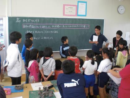 子どもが友達の作品を鑑賞し合うことによって、互いの良さやおもしろさを感じ合う。が単元の目標です。