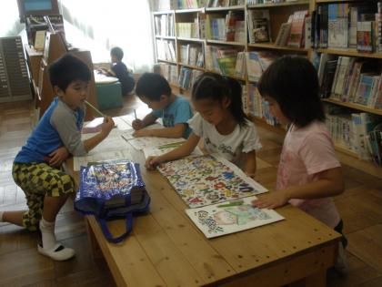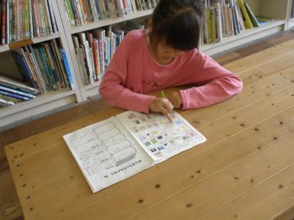 1年生が、図書室で読書をしていました。読書ファイルで学年の推薦図書を確認しながら、本を選んだり読んだりしていました。中には、完読したことを、誇らしげに報告してくれる子もいました。