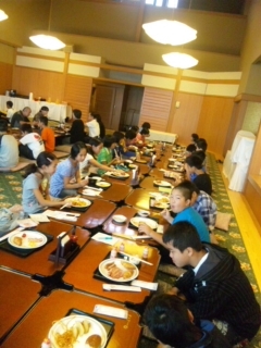 まだ眠そうな様子ですが、朝食バイキングで今日のパワーをつけます!