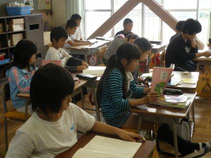 みんなで順番に、最後の場面を音読していました。青い煙の立ち上る切ない場面を、どう読み込んでいくでしょう。