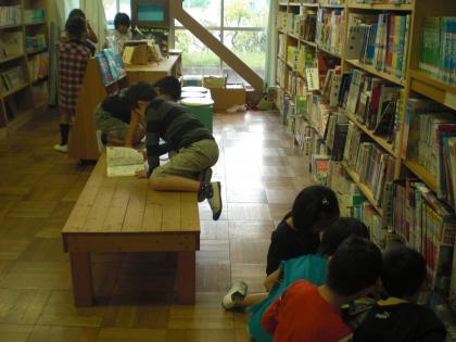 児童玄関の前に図書室があります。10月は、読書の月です。