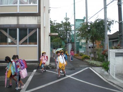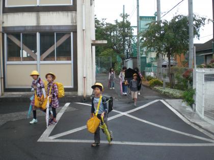 今日は、小雨の中を登校です。意外と傘をさす児童が、少ないと思います。