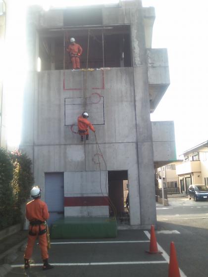 訓練では、本校職員を3階から救助する訓練をしていただきました。
