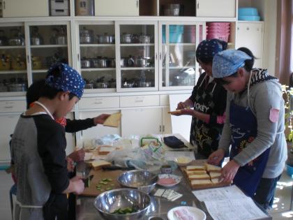 6年生恒例の家庭科でのサンドイッチ作りです。