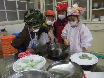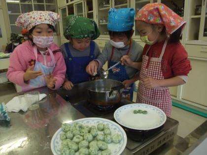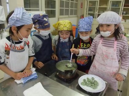 先週、みんなで学校の近くの空き地に出かけて、よもぎをつんできました。静浦の自然の産物を使って、春をおいしくいただきます。