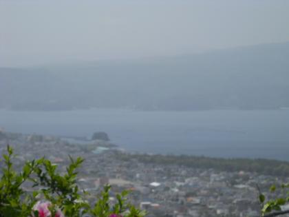 香貫山より撮影しましたが、黄砂でしょうか晴天ですがはっきり駿河湾が見えません。