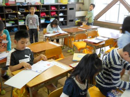 1年1組、2組ともに「ひらがな」の学習をしていました。