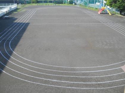 運動場へ引かれた白線!リレー会も間近です。
