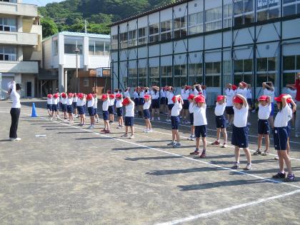 今月は、かけ足に月間です。準備運動のモーニングストレッチです。