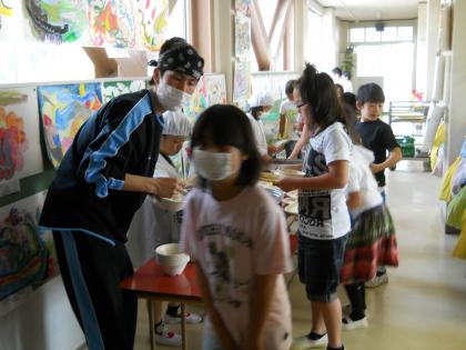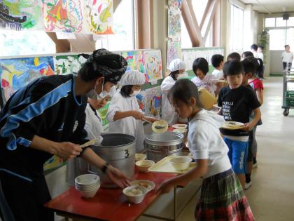 教育実習生(川口さん)第2週も今日で終了です。給食準備の実習です。