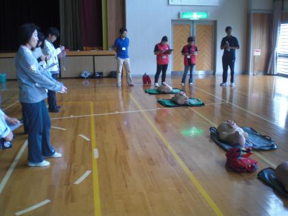 プールシーズンをむかえ、教職員の救急救命講習会を講師(松村・藁科・野中さん)を招聘し行いました。