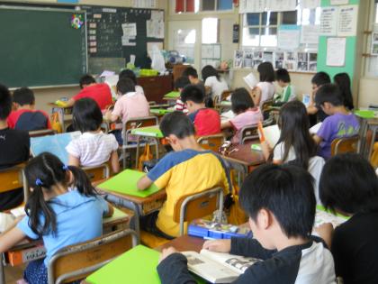 今月は、読書月間です。7時55分になると放送委員会の協力で呼びかけが始まります。