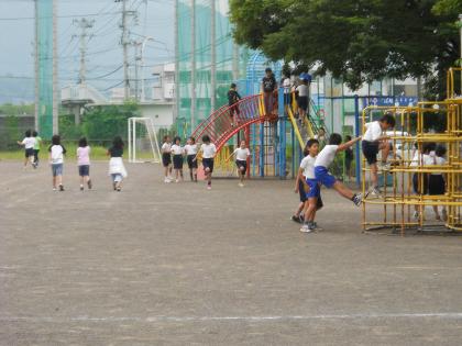 登校し元気に運動場で遊んでいます。