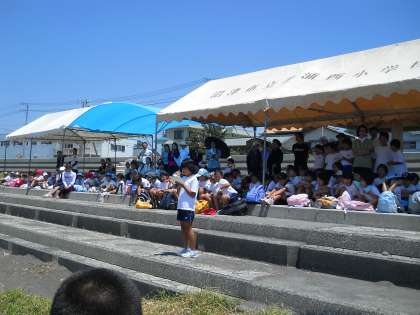 閉会式です。水泳連盟さんにお礼の言葉や6年生の感想、さらに5年生の言葉などありました。最後に、海岸清掃をしました。