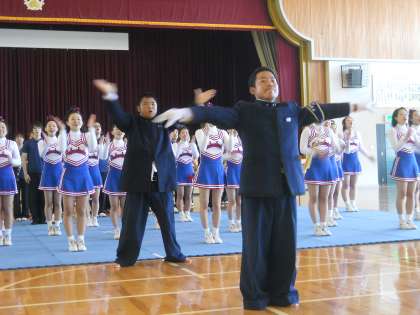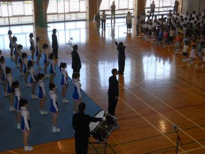 最後は、静浦小校歌を学習院大学応援団部と児童と大合唱しました。