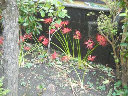 今日は、第2時間目に縦割りリレーが行われます。季節の花(彼岸花)が咲いていました。