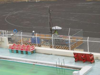 雨の中地質調査が進められています。