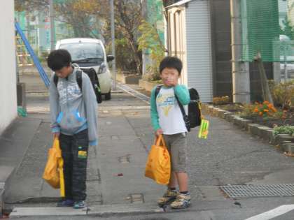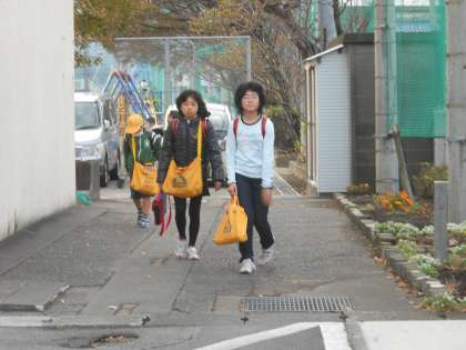 ひまわり学級の菊地さん・生駒さんが正門で一緒になりました。