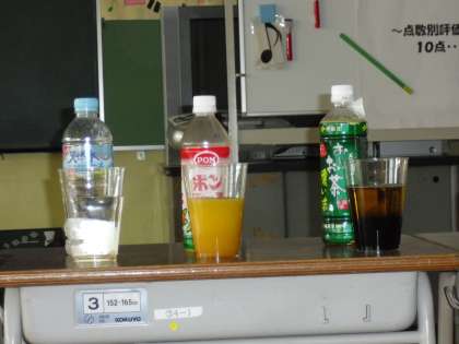 正しい薬の飲み方やお酒、たばこの害について勉強しました。薬をお茶で飲む実験を見て、薬が変化してしまうことを知りました。