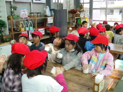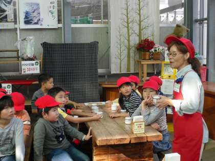 説明を聞いてからびんの中の生クリームを振って振って振って・・・作りました。