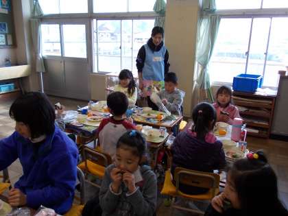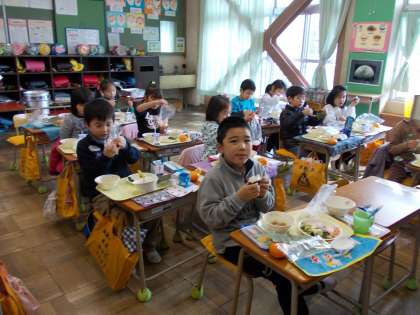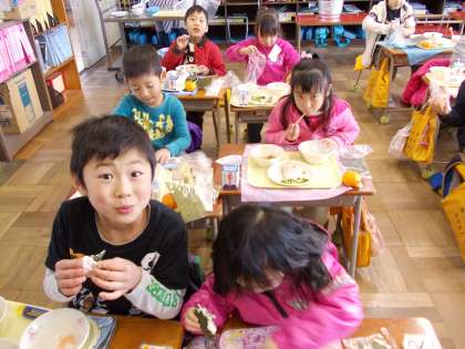 1年生の教室へ・・・静浦中より栄養士さんが来てみんなの様子を見てくださいます。