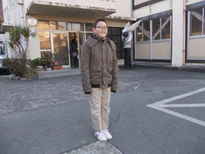 今日は、6年の中村翼さん(あいさつ人形として)正門に立ち朝のあいさつ運動をしてくれました。