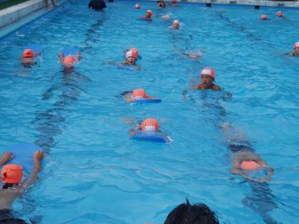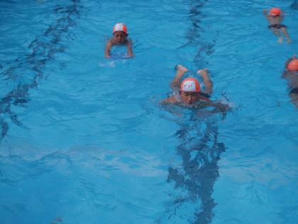 気温25度・水温25度です。3つのグループに分かれ練習です。昇級者がまた出そうです。自分との戦いです。「心もからだも強い子」を目指して!