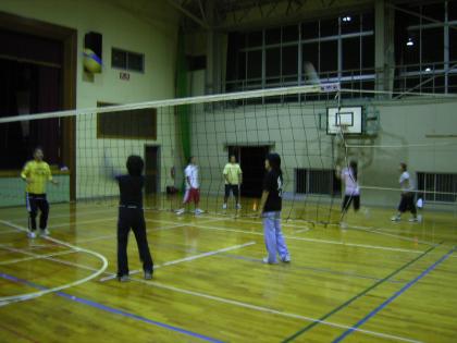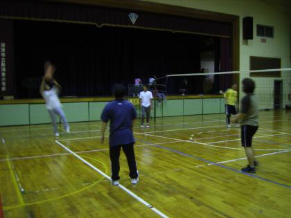 夜の体育館に響く、ハーイ  ソーレ  の声。PTAの皆さんが今月25日(土)に開催される南ブロックバレーボール大会に向けて、練習をしているのです。大会当日が楽しみです。