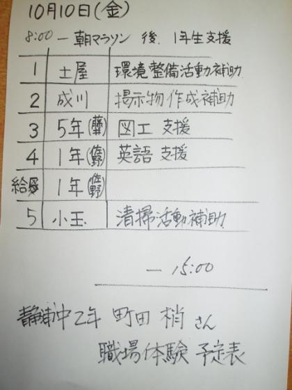 静浦中学校2年生町田さんが、今日1日東小で体験実習をします。
