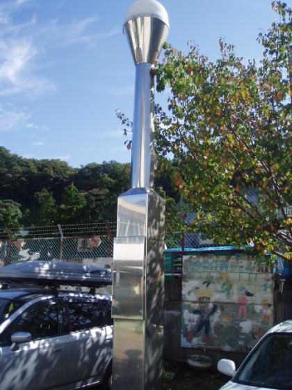 点は、約地上2万キロメートルの高さを周囲とするGPS衛生が発信する電波を受信し、この地点を観測するための施設です。