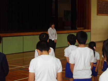 先生から、東小の児童は笑顔、挨拶が素晴らしいという印象の言葉をいただきました。そして、皆さんの名前を早く覚えることが目標です。お話がありました。