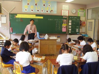 算数科の授業 「かけ算」食べられるキャラメルまでありました。