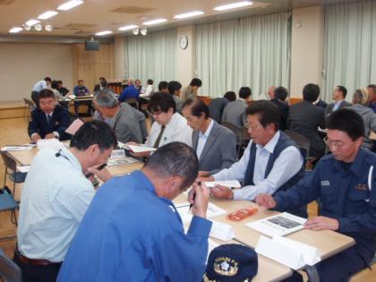 各自治会長・消防団・市防災担当・PTA会長等が参加して話し合いがじっしされました。