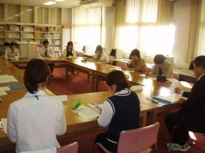 5年生家庭科授業公開のあと、授業についての話し合いです。鈴木指導主事等からの指導を明日の授業に生かしていきたいと思います。