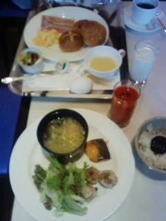 朝食です。バイキングです。昨日同様もりもり食べています。