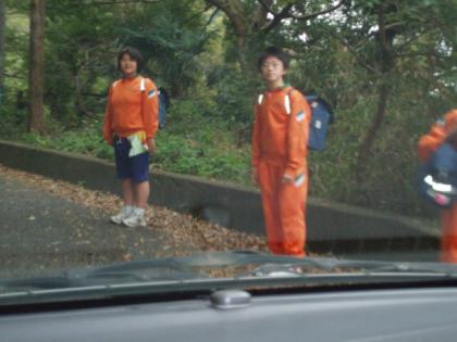 10月31日静浦中学を訪問しました。坂道で、挨拶をしてくれる中学生です。すばらしい伝統です。うわさでは聞いていましたが!すごい!