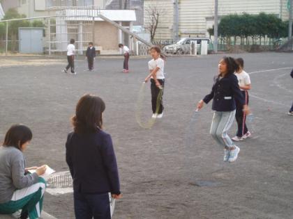 寒さに負けないで、なわとび運動に取り組んでいます。