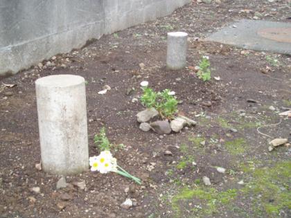 4年生が、お世話をしているニワトリが亡くなりました。そのお墓に、浩弥さん・勇哉さん・和騎さんがお花を供えてくれました。