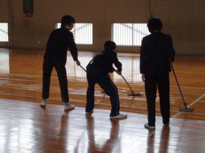 来週卒業士を迎える6年生が、会場となる体育館にワックスがけをしています。