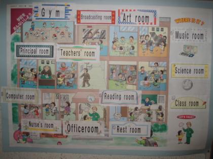 授業の合間に、一生懸命掲示物を創っています。