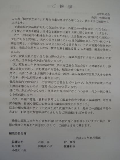 口野松老会から、口野方言集をいただました。5年生の国語科の学習に、「方言と共通語」の学習があります。