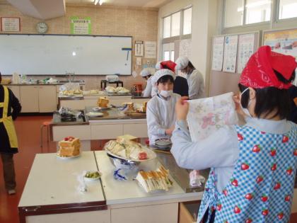 6年生が、明日の卒業式を前にサンドイッチ作りをしています。